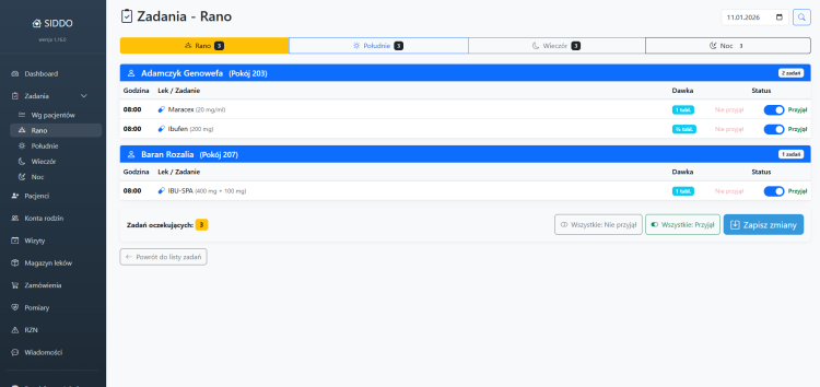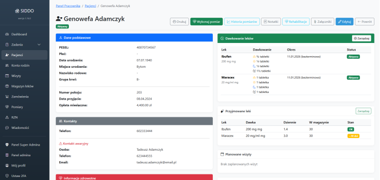 SIDDO został zaprojektowany z myślą o realnych potrzebach domów seniora, DPS-ów oraz prywatnych placówek opiekuńczych. System łączy w sobie funkcje administracyjne, medyczne i komunikacyjne, eliminując chaos dokumentacyjny i ryzyko błędów.